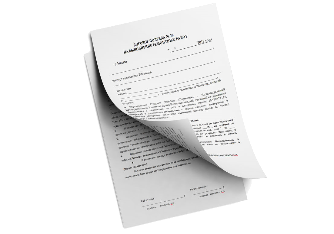 В договоре четко фиксируется весь список работ, гарантии исполнителя и другие важные моменты строительства или ремонта объекта.
